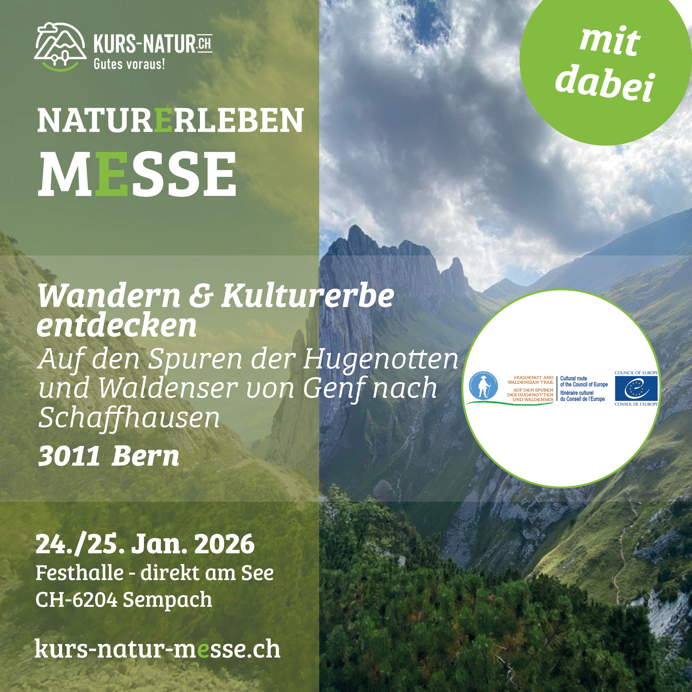 Cette année nous présenterons surtout nos offres (tous bilingues) «Prendre racine - Hommes et plantes en exil», le topoguide «Sur les pas des Huguenots et des Vaudois du Piémont. De Genève à Schaffhouse en 28 jours» ainsi que le visioguide «Naufrage 05.09.1687».